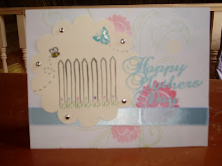 ________________________________________Here is a card I made several weeks ago and found the pic of recently and realized I did not post it. I got several new stamps about a month ago and this card is the only time I actually got to play with them. I know that is SAD! Hopefully things will start to get easier here at home. Yeah right. But at least I can hope. Please don't take that away from me to.
